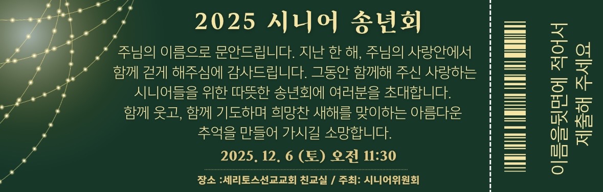 목장사역 2025년 CMC 문화교실 가을학기 종강식 페이지 정보 작성자 세리토스선교교회 날짜 2025-12-03 17:41 목록 본문 2025년 CMC 문화교실 가을학기 종강식 다음글Sheriff Station방문 2025 추수감사주일 25.11.25 댓글 0 댓글목록 등록된 댓글이 없습니다. 목록