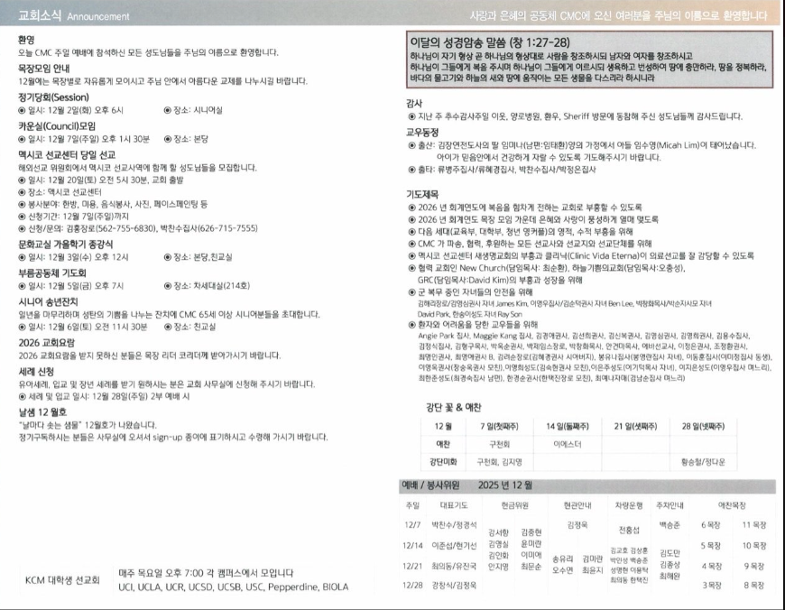 2025년 11월 30일 주일주보 페이지 정보 작성자 세리토스선교교회 날짜 2025-12-04 13:29 목록 본문 2025년 11월 30일 주일주보 이전글2025년 12월 7일 주일주보 25.12.06 다음글2025년 11월 23일(추수감사주일) 2부 주보 25.11.22 댓글 0 댓글목록 등록된 댓글이 없습니다. 목록
