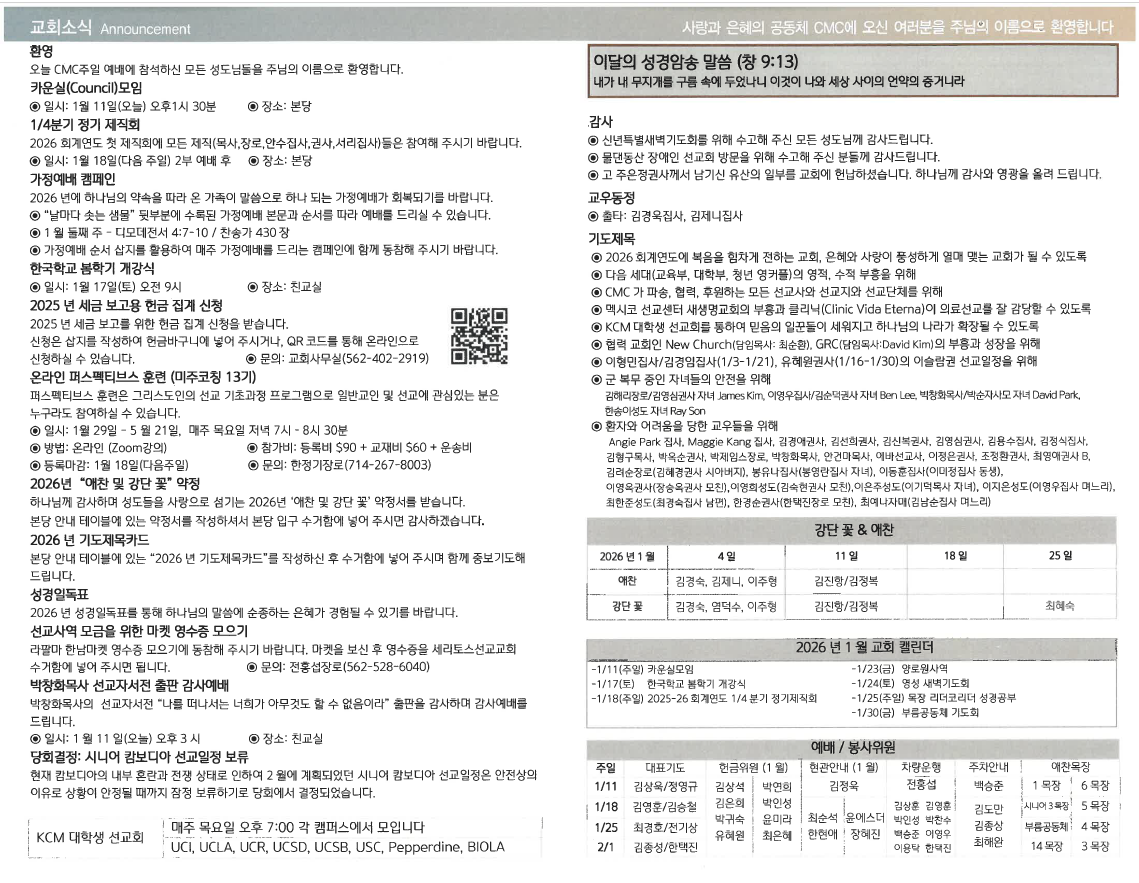 2026년 1월 11일 주일주보 페이지 정보 작성자 세리토스선교교회 날짜 2026-01-10 16:10 목록 본문 2026년 1월 11일 주일주보 다음글2026년 1월 4일 주일주보 26.01.03 댓글 0 댓글목록 등록된 댓글이 없습니다. 목록