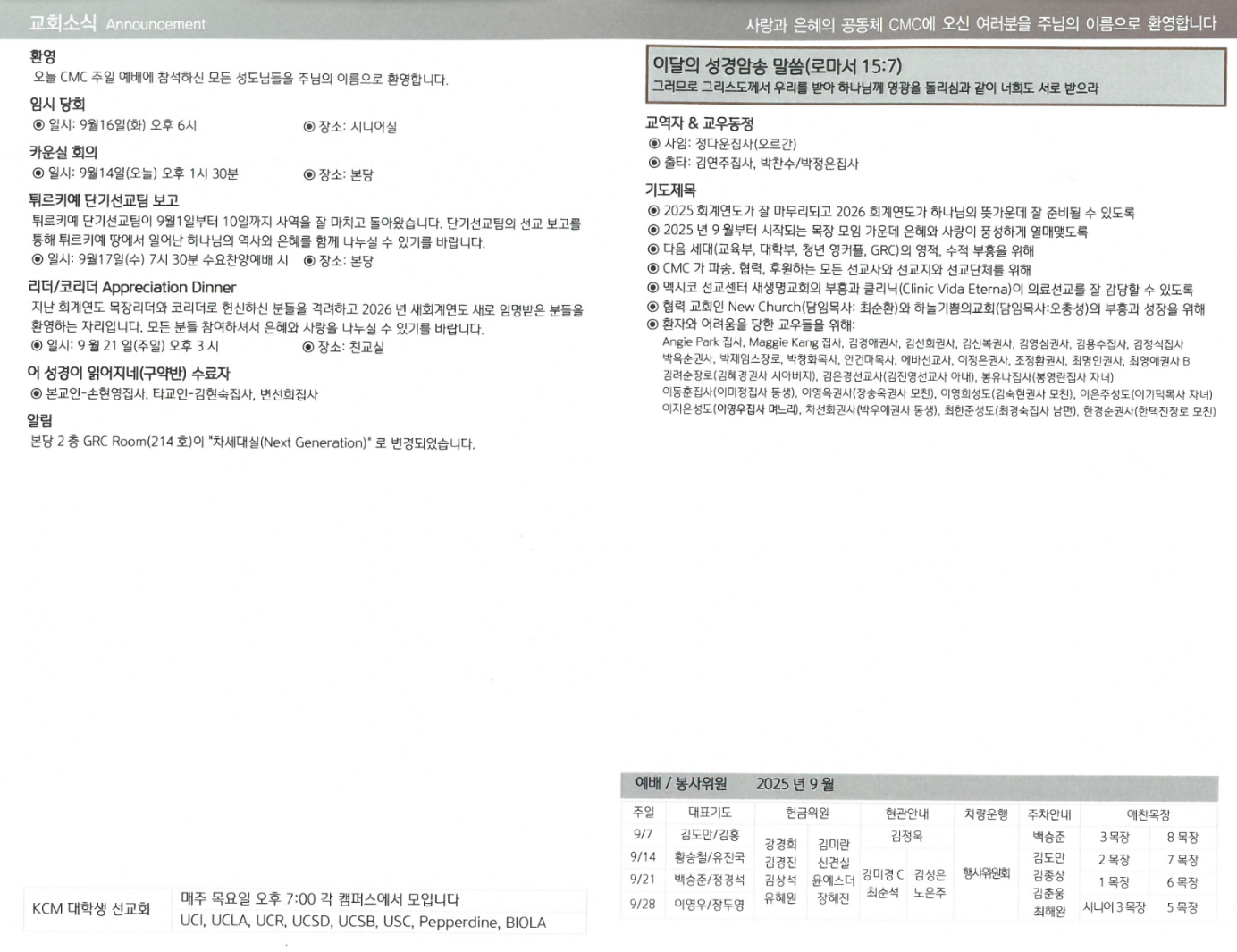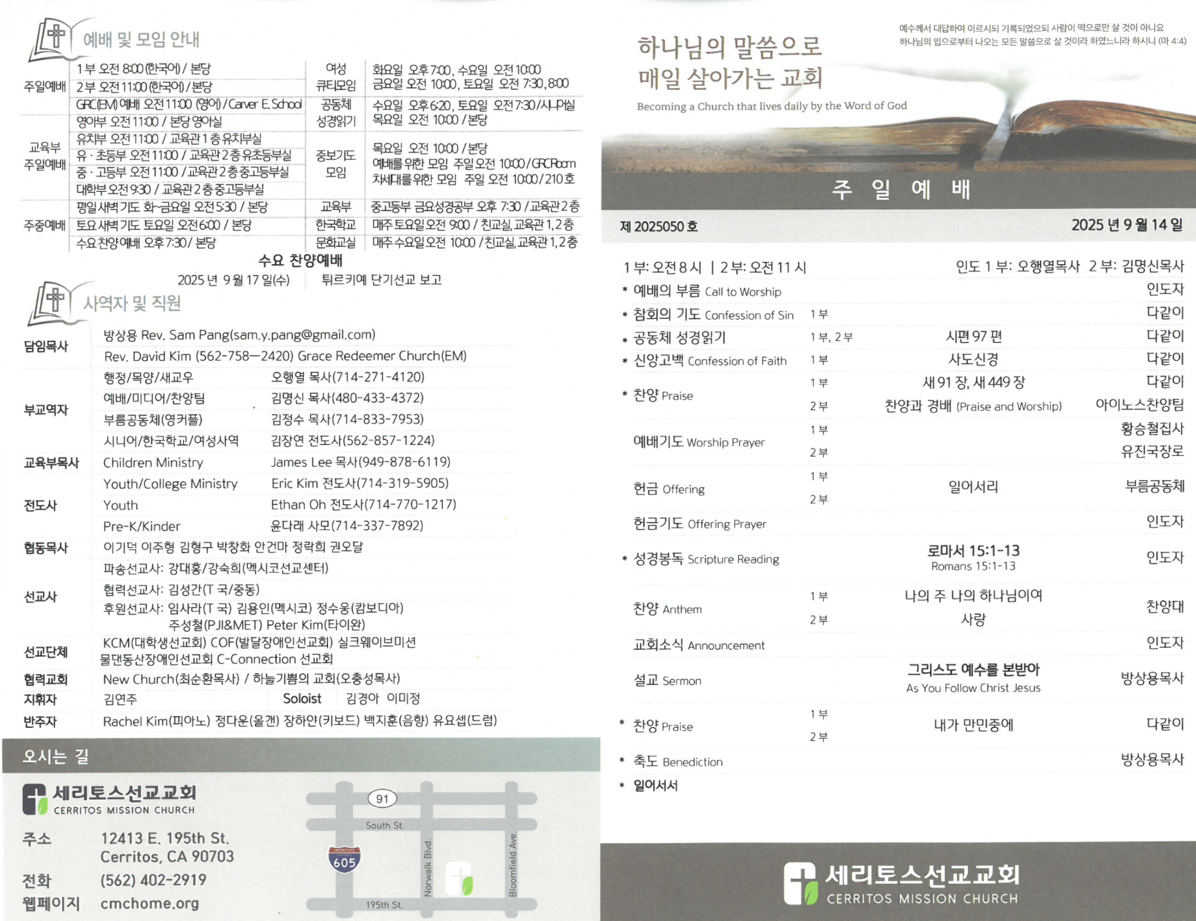 2025년 9월 14일 주일주보 페이지 정보 작성자 세리토스선교교회 날짜 2025-09-13 13:43 목록 본문 2025년 9월 14일 주일주보 이전글2025년 9월 21일 주일주보 25.09.20 다음글2025년 9월 7일 주일주보 25.09.06 댓글 0 댓글목록 등록된 댓글이 없습니다. 목록