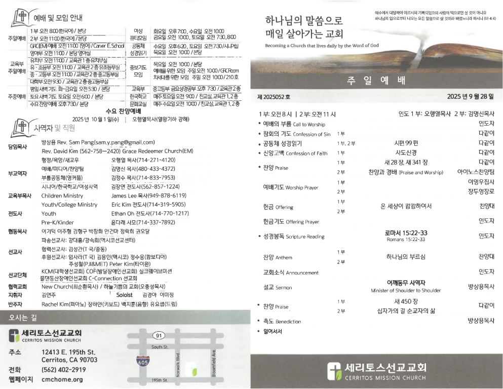 2025년 9월 28일 주일주보 페이지 정보 작성자 세리토스선교교회 날짜 2025-09-27 16:00 목록 본문 2025년 9월 28일 주일주보 다음글2025년 9월 21일 주일주보 25.09.20 댓글 0 댓글목록 등록된 댓글이 없습니다. 목록