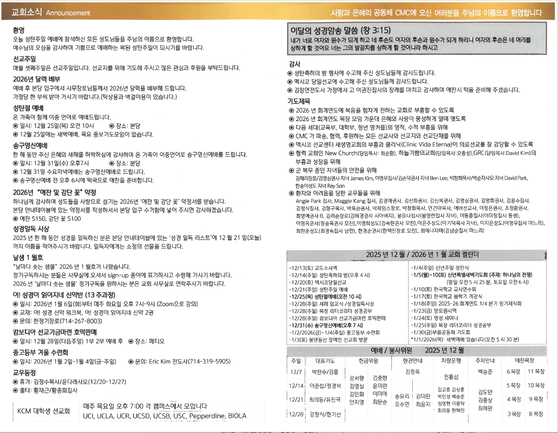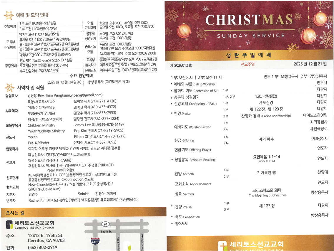 2025년 12월 21일 주일주보 페이지 정보 작성자 세리토스선교교회 날짜 2025-12-20 14:11 목록 본문 2025년 12월 21일 주일주보 이전글2025년 12월 28일 주일주보 25.12.27 다음글2025년 12월 14일 주일주보 25.12.13 댓글 0 댓글목록 등록된 댓글이 없습니다. 목록