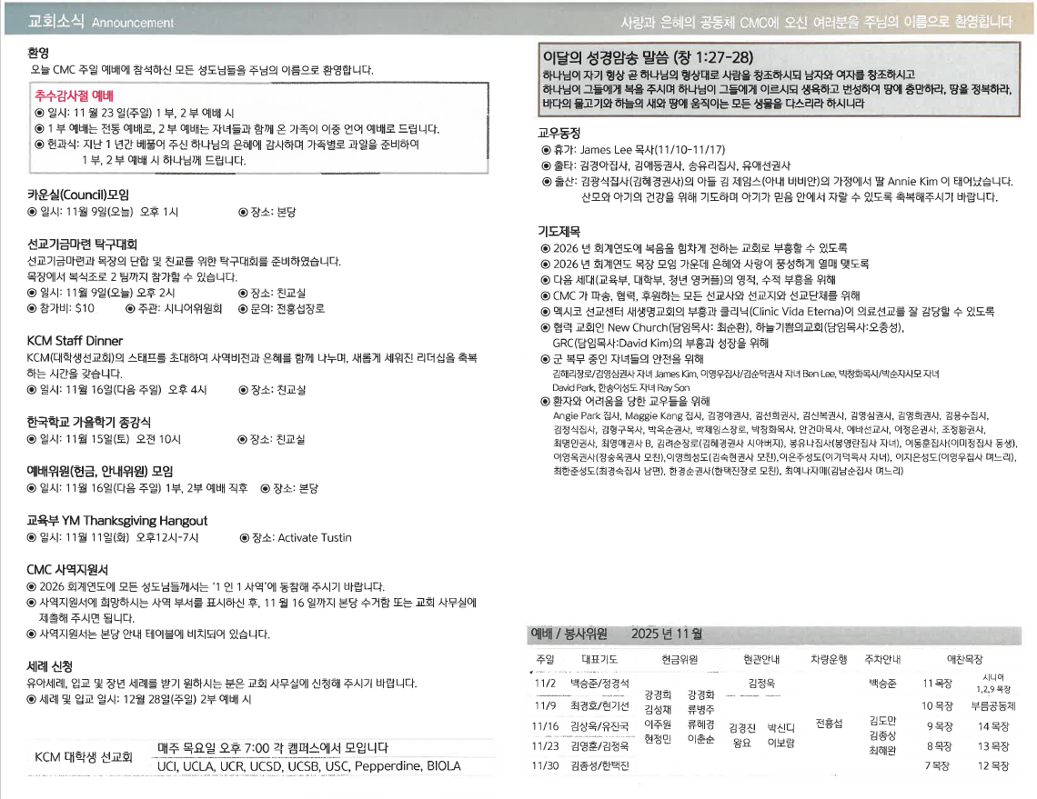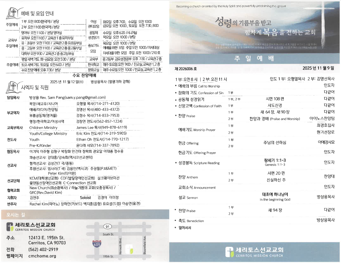 2025년 11월 9일 주일주보 페이지 정보 작성자 세리토스선교교회 날짜 2025-11-08 14:56 목록 본문 2025년 11월 9일 주일주보 이전글2025년 11월 16일 주보 25.11.15 다음글2025년 11월 2일 주일주보 25.11.01 댓글 0 댓글목록 등록된 댓글이 없습니다. 목록